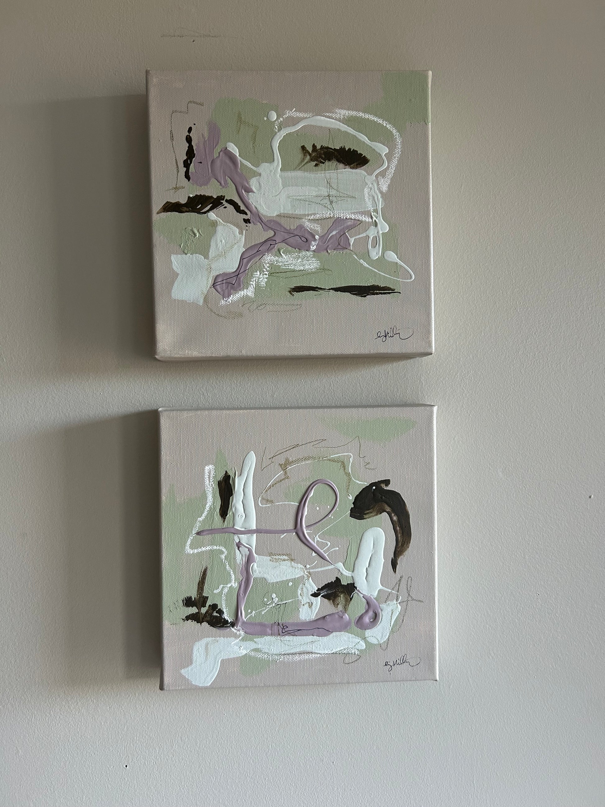 This abstract set speaks to the movement of faith how God’s presence flows through even the most uncertain spaces. The soft tones of sage and lilac blend with layers of white, symbolizing renewal, grace, and peace.